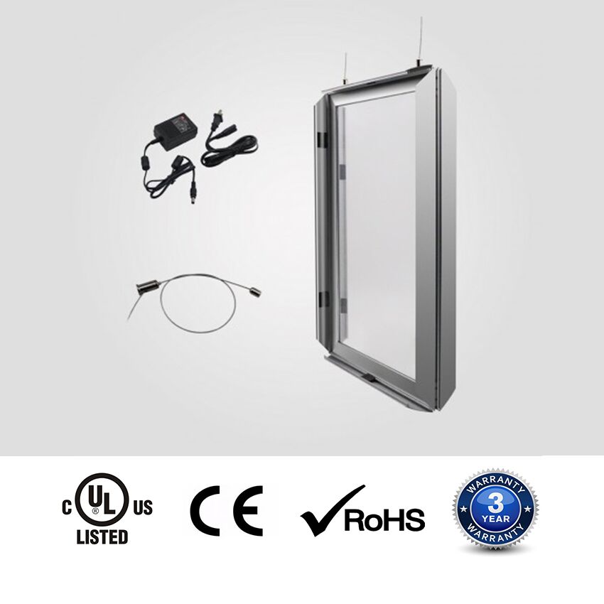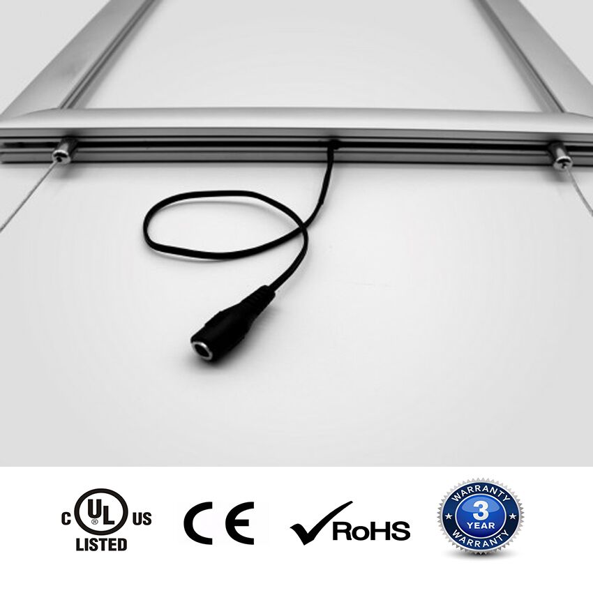 The single side snap frame lightbox is an ultra-thin advertisement lightbox with energy-saving light. The four-side click open offers practicality through the quick and easy changing of graphics. The main parts are LGP (Light Guide Plate), LED strip, and click aluminum frame.