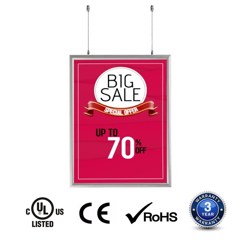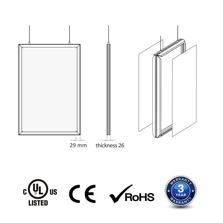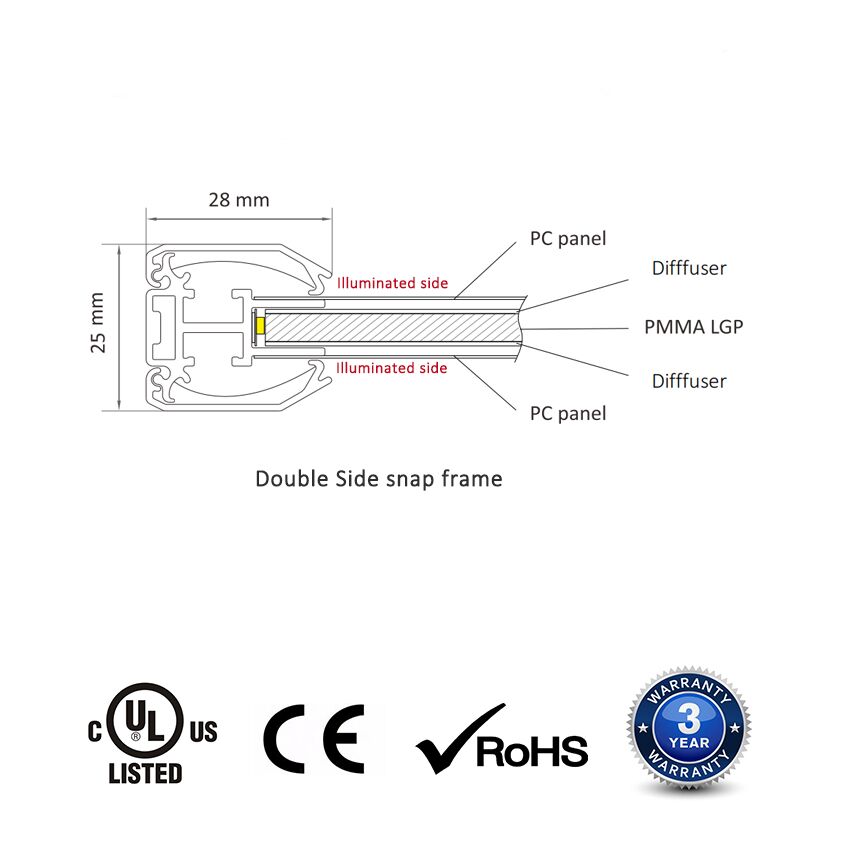 Double Side Snap frame lightbox features the high-quality LGP (Light Guided Plate) LED light panel enclosed in a flawlessly designed aluminum snap frame. It has a very good lighting effect for a double face display. Add an evenly illuminate backlight source to any printed image to attract more attention for your products or services.